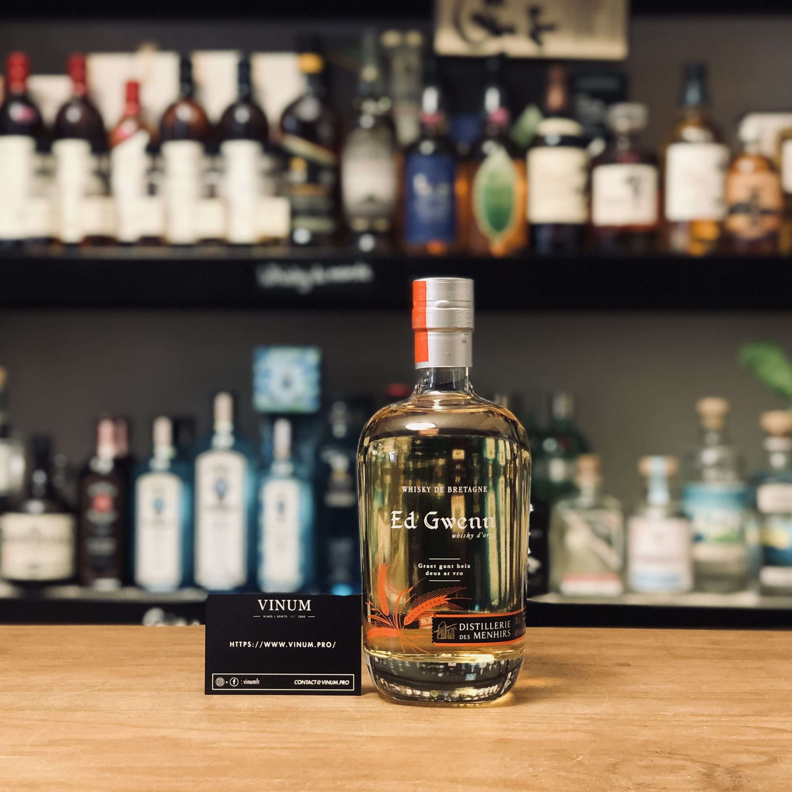 Ed Gwenn est un single grainSelon la Scotch Whisky Association, « le single grain est le produit d'une seule distillerie de grains ». Il est né en Ecosse durant la première moitié du XIXe siècle, suite à l'invention du patent still par Aeneas Coffey. A l'origine le grain était assimilé à de l'orge non maltée, mais progressivement, il fut remplacé par un mélange de céréales, à forte proportion de maïs, contenant également du blé, de l'orge maltée, de l'orge non maltée et du seigle. Rarement embouteillé en tant que tel, le single grain est surtout employé dans les blends. More whiskyTerme générique désignant tous les whiskies produits en Ecosse, au Canada, au Japon et plus exceptionnellement aux Etats-Unis. L'origine gaélique du mot whisky est Uisge Beatha. More produit par la Distillerie des Menhirs, en Bretagne. Élaboré à partir d’orge 100 % bretonne, il est distillé en alambic à colonne, puis vieilli plus de quatre ans en fûts de chêne français et américain. Il est embouteillé à 45 % vol. sans coloration ni filtration à froidProcédé consistant à refroidir un spiritueux avant filtration pour éviter les troubles visuels. More, afin de préserver l’intégrité de ses arômes.