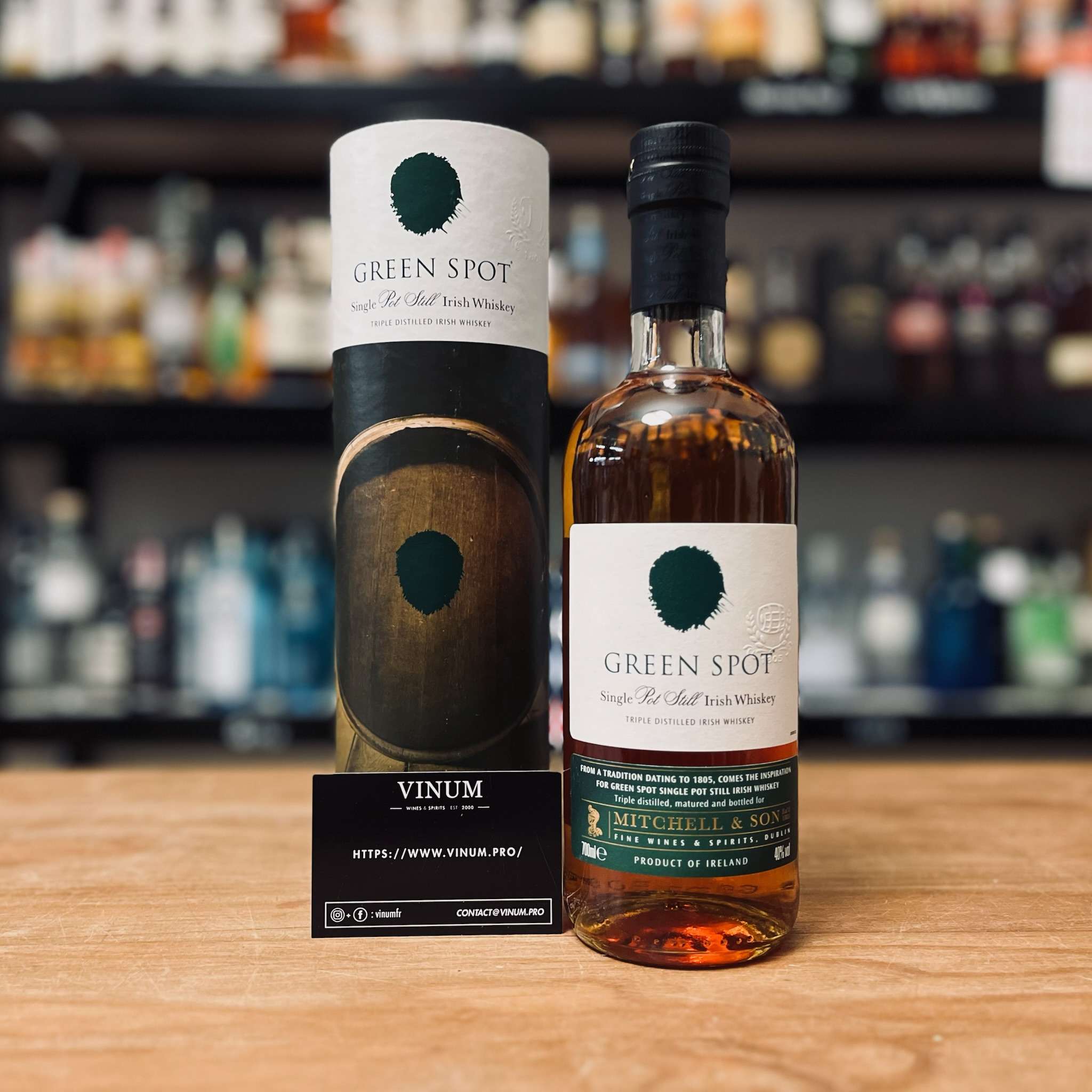 Le whiskey Green Spot Single Pot Still 40% est produit en Irlande par la distillerie de Midleton pour la maison Mitchell & Son. Il est fabriqué selon la méthode traditionnelle dite « single pot still », à partir d’un mélange d’orge maltée et non maltée, distillé trois fois dans des alambics en cuivre. Les whiskies entrant dans l’assemblage sont âgés de 7 à 10 ans et ont été élevés principalement en fûts de bourbon, puis transférés en fûts de sherry pour affiner leur caractère.