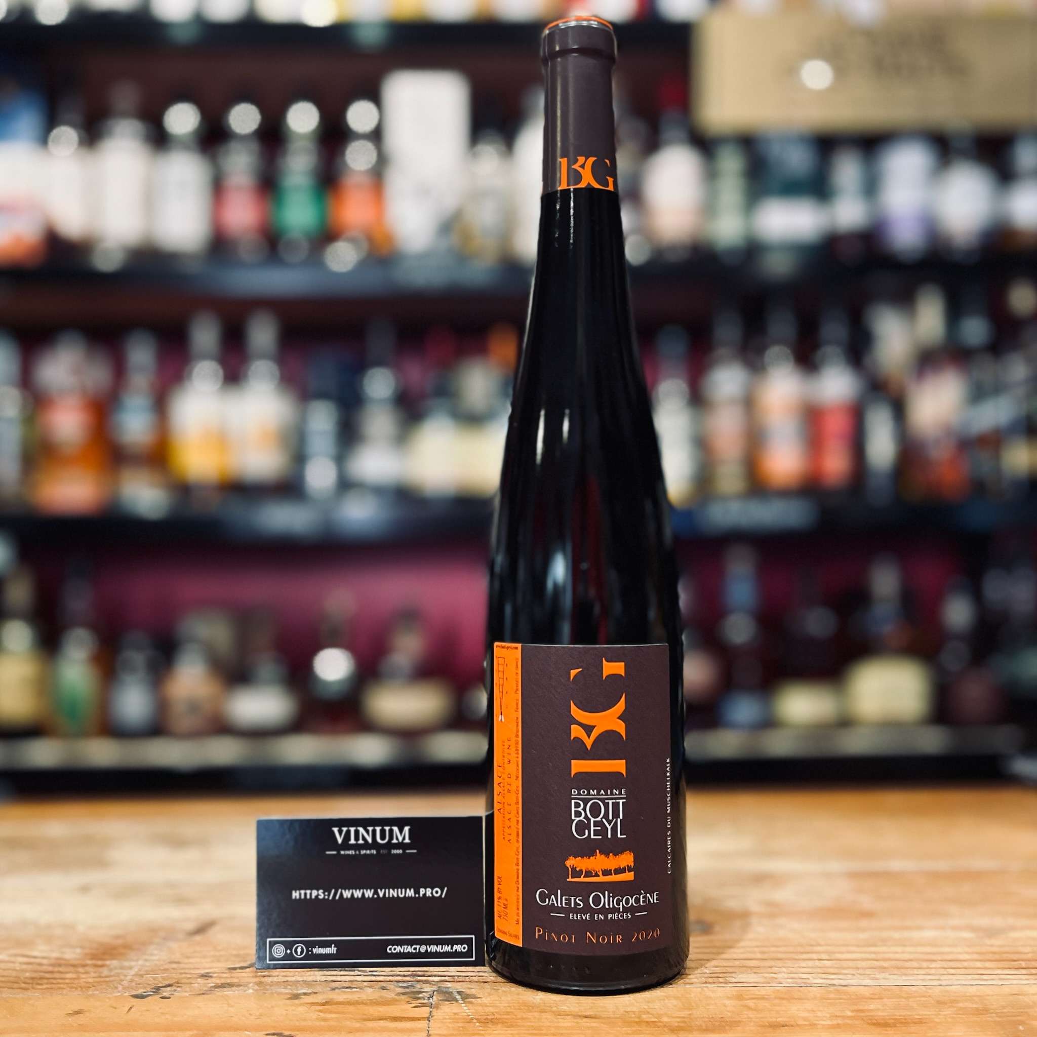 Le Pinot Noir Galets Oligocène du Domaine Bott-Geyl vient d’un terroirUn terroir est un ensemble de vignobles d'une même région et d'une même appellation, partageant le même type de sol et de conditions climatiques, qui contribuent à donner au vin une spécificité unique. More marno-limono-calcaire très minéral, sur la partie haute du Grand Cru Sonnenglanz. Le sol est composé de galets d’origine oligocène et de calcaire Muschelkalk, ce qui donne au vin une expression particulièrement minérale et fine. Le domaine travaille en agriculture biologique et biodynamique, avec des vendanges manuelles.