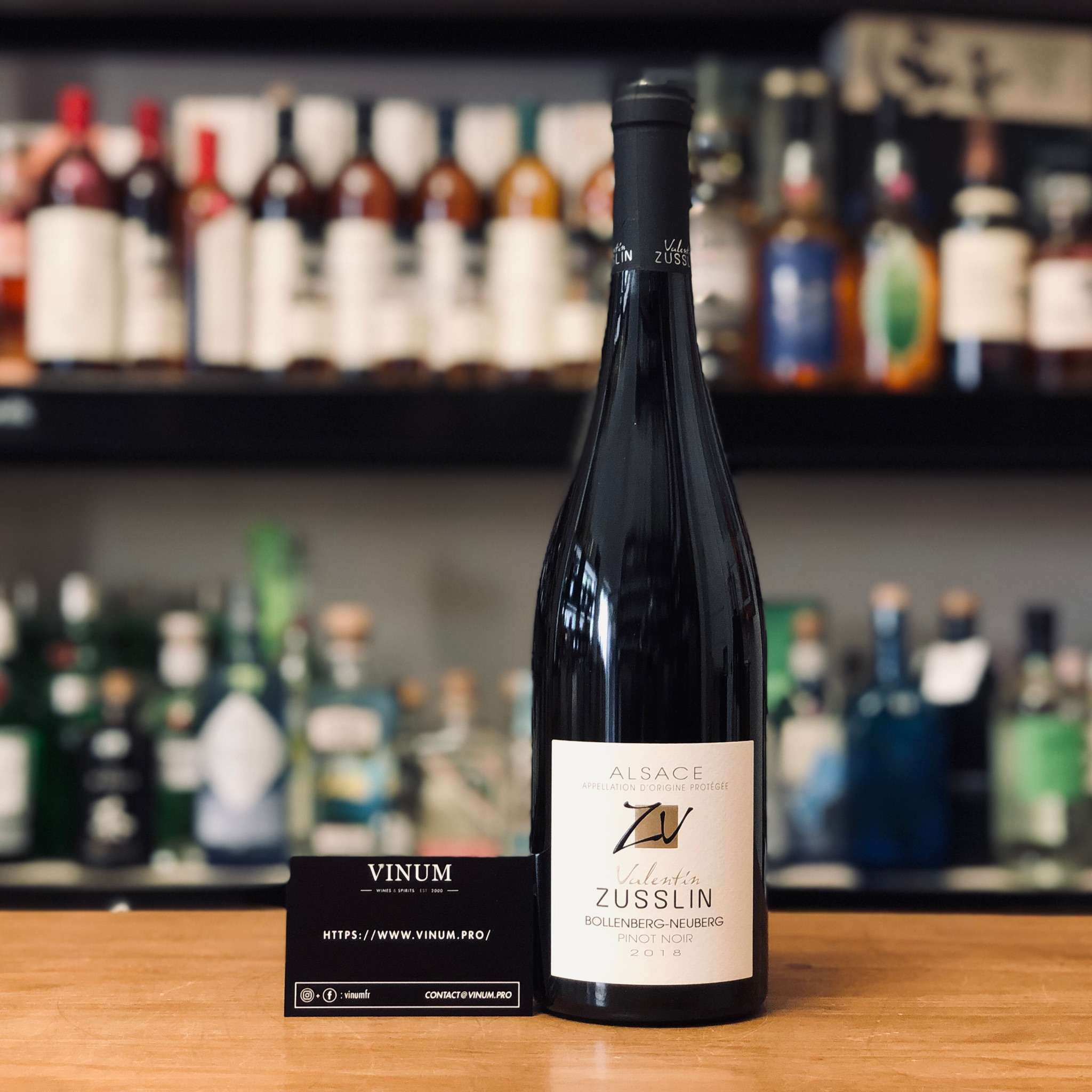 Le Pinot Noir Bollenberg Neuberg du Domaine Valentin Zusslin est une cuvéeVin provenant d'une cuve déterminée. Dans la pratique, le vigneron choisit et isole un volume de vin pour son caractère spécifique. Il est courant de donner un nom à une cuvée. More haut de gamme, issue de la partie supérieure orientée est du Bollenberg, un terroirUn terroir est un ensemble de vignobles d'une même région et d'une même appellation, partageant le même type de sol et de conditions climatiques, qui contribuent à donner au vin une spécificité unique. More calcaire du Jurassique. Cette parcelle, pauvre en argile et entourée de landes sèches, bénéficie d’une exposition optimale pour une maturationDernière étape de l'élaboration, la maturation est l'opération qui consiste à faire vieillir le whisky en fût. C'est au cours du vieillissement que le whisky acquiert sa couleur plus ou moins ambrée. C'est également au cours du vieillissement que le whisky gagne en complexité et en finesse. More lente et homogène des raisins. La vinification comprend une macération de plus de deux semaines, avec trois pigeages manuels quotidiens, suivie d’un élevage de 15 mois en pièces de 228 litres, dont 15 % en bois neuf ayant bénéficié d’un séchage prolongé de 42 mois pour affiner l’apport tanniqueSe dit d'un vin riche en tannins, substance astringente provenant du bois de la barrique ou des rafles de raisin. La sensation d'astringence se caractérise par l'assèchement de la bouche. A noter que la présence de tannins dans les vins rouges conditionne l'aptitude au vieillissement. More.