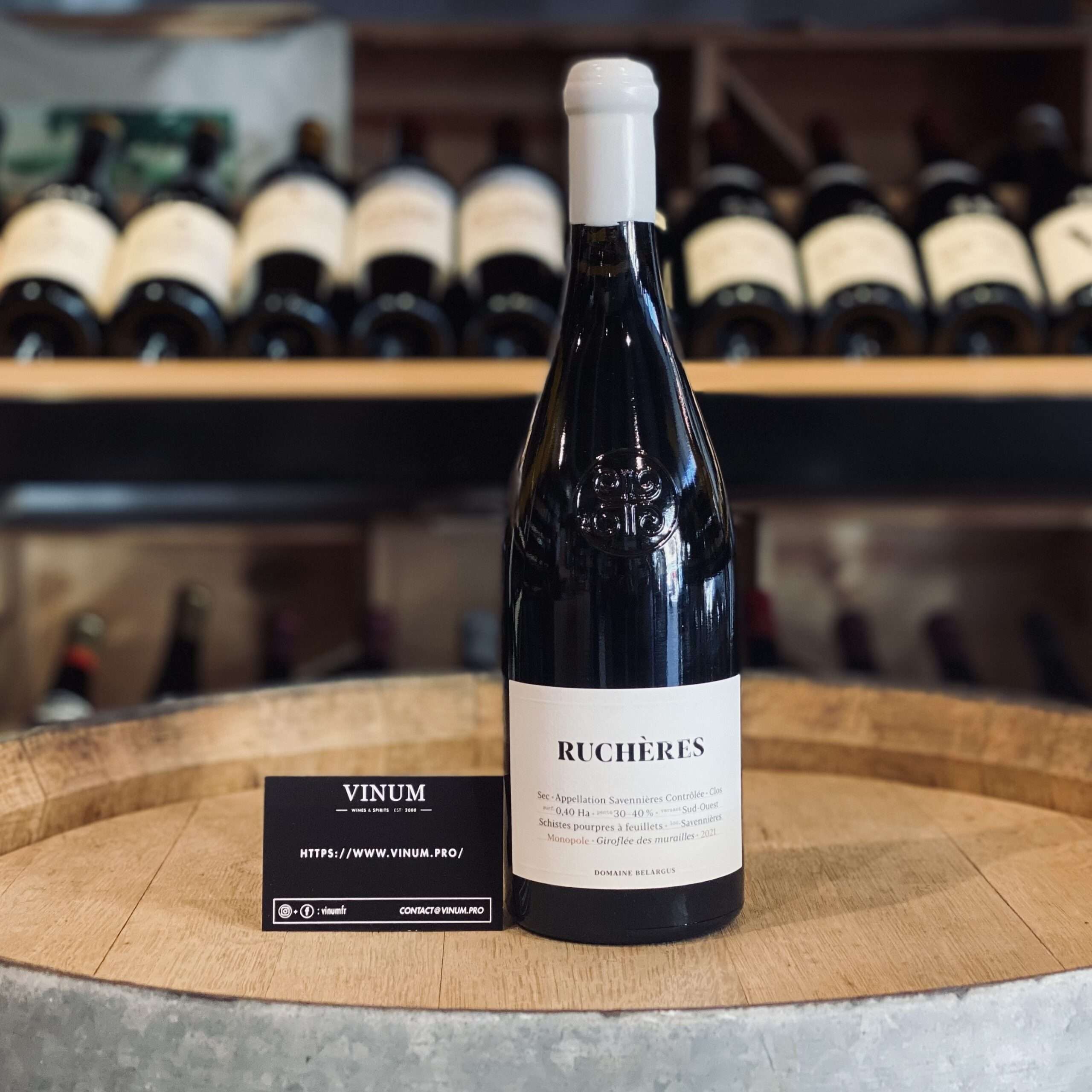 Le Clos des Ruchères de Domaine Belargus est un vin blanc sec de l’appellation Savennières (100 % Chenin Blanc). Il s’agit d’une cuvéeVin provenant d'une cuve déterminée. Dans la pratique, le vigneron choisit et isole un volume de vin pour son caractère spécifique. Il est courant de donner un nom à une cuvée. More monopole, cultivée sur une parcelle unique. Le terroirUn terroir est un ensemble de vignobles d'une même région et d'une même appellation, partageant le même type de sol et de conditions climatiques, qui contribuent à donner au vin une spécificité unique. More est remarquable : schistes violets très fracturés, roche mère friable, avec une couche superficielle de terre très mince d’environ vingt centimètres.