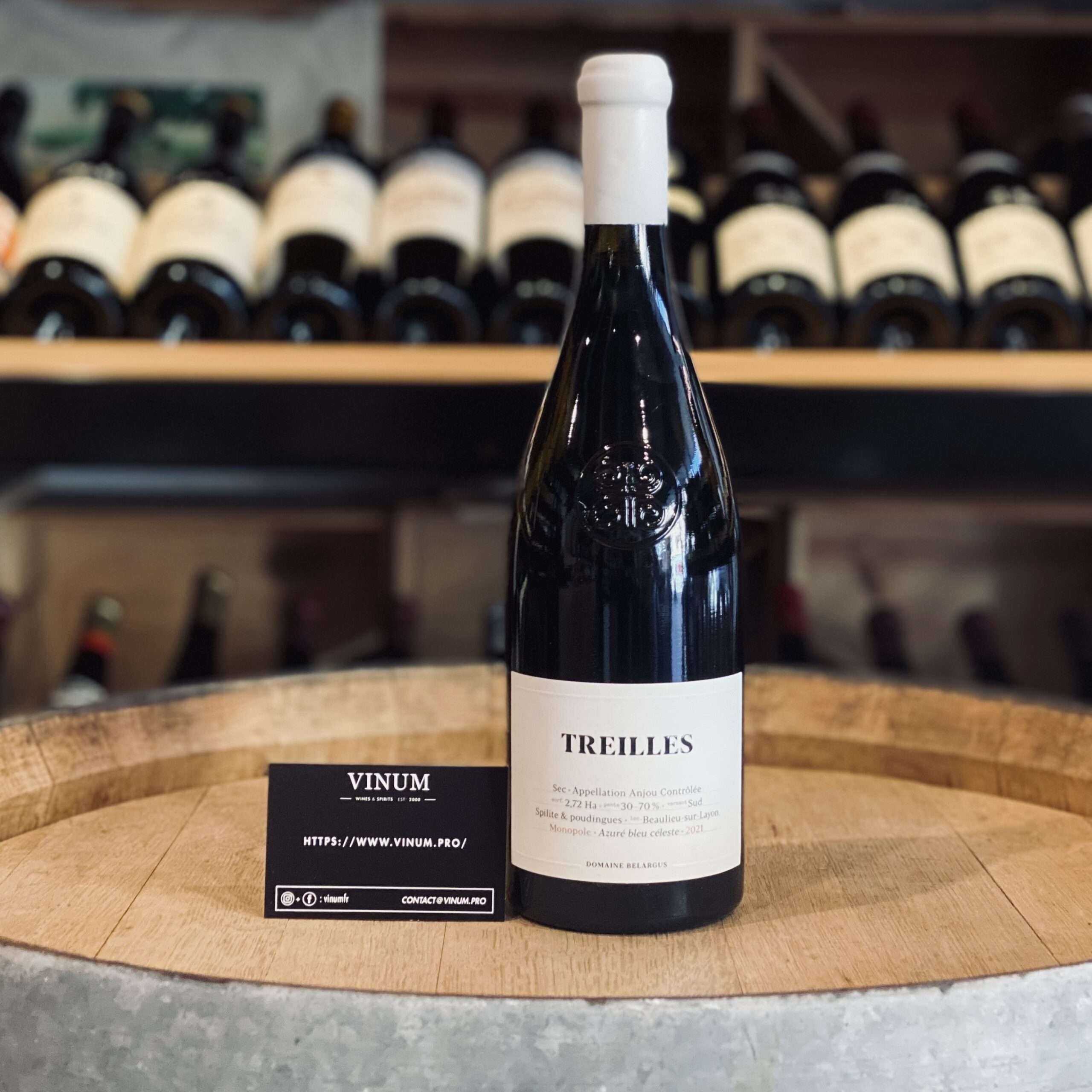 Le Domaine Belargus Treilles 2021 est un vin blanc sec issu à 100 % de chenin blanc, provenant d’une parcelle en monopole située dans l’Anjou Noir, sur le très escarpé coteau des Treilles. Ce terroirUn terroir est un ensemble de vignobles d'une même région et d'une même appellation, partageant le même type de sol et de conditions climatiques, qui contribuent à donner au vin une spécificité unique. More unique est composé de roches volcaniques et de schistes, conférant au vin une identité minérale marquée. La viticulture y est exigeante, entièrement manuelle en raison de la pente, et l’élevage dure environ trois ans, en fûts et en cuves, pour favoriser une expression pure du terroirUn terroir est un ensemble de vignobles d'une même région et d'une même appellation, partageant le même type de sol et de conditions climatiques, qui contribuent à donner au vin une spécificité unique. More.