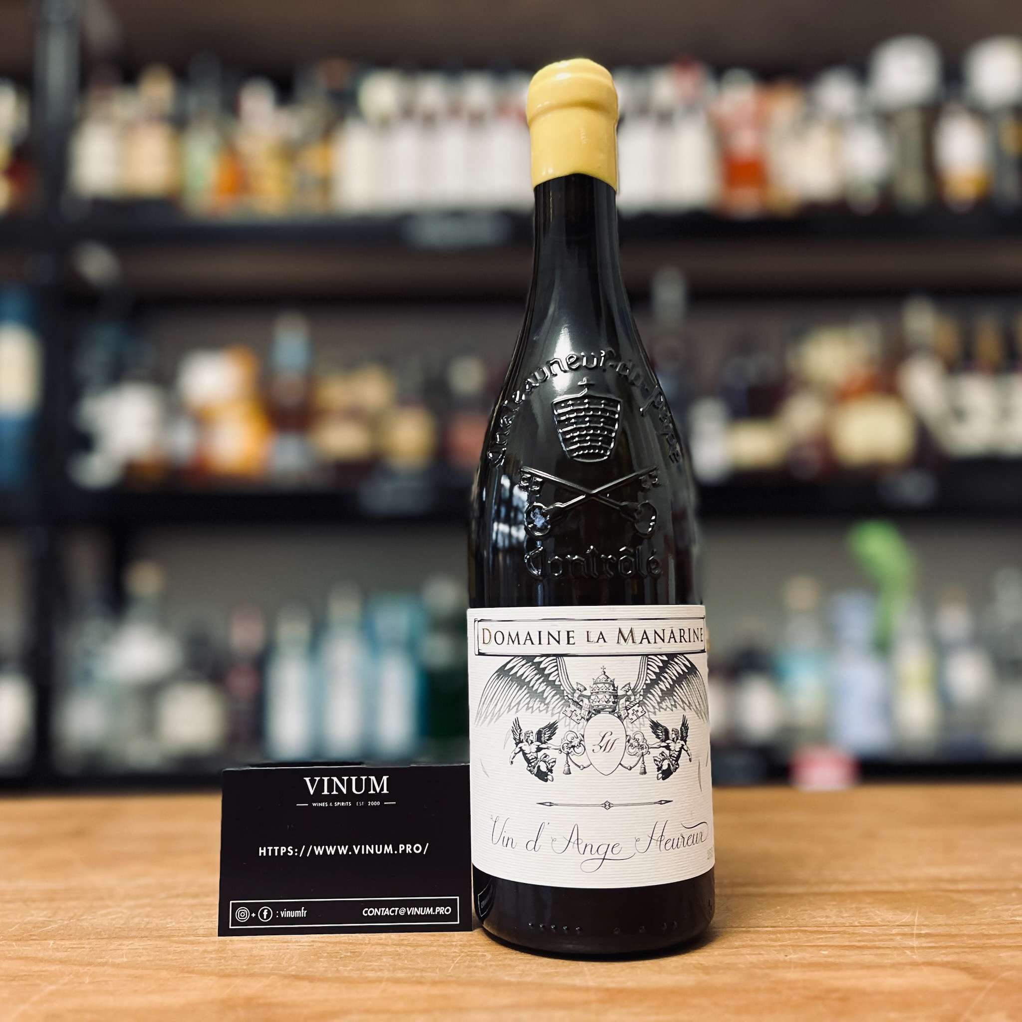 Le Châteauneuf-du-Pape blanc « Vin d’Ange Heureux » du Domaine La Manarine incarne une interprétation rare et ambitieuse des blancs de l’appellation. Issu d’un assemblageMélange de jus ou de vins de même origine pour obtenir les caractéristiques recherchées. More original de 50 % Clairette Blanche et 50 % Clairette Rose, ce vin provient de vignes âgées d’environ 50 ans, plantées sur des sols de sable rouge du quartier de la Bigote, terroirUn terroir est un ensemble de vignobles d'une même région et d'une même appellation, partageant le même type de sol et de conditions climatiques, qui contribuent à donner au vin une spécificité unique. More réputé pour sa fraîcheur et son caractère filtrant. Conduit selon une philosophie visant l’expression naturelle de l’élégance et de la finesse des terroirs, il est élaboré en AOP Châteauneuf-du-Pape, dans une production très confidentielle de 700 bouteilles numérotées